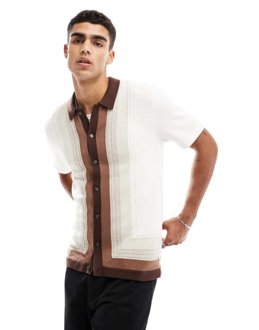 Abercrombie Fitch Retro Brown Border Button Through Knit Polo In Brown Asos